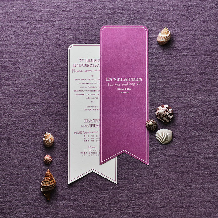 このデザインで表記される新郎新婦のご芳名は、サンプル掲載表記を同意していただいたおふたりのご好意により、実際に制作されたそのままのデザインで掲載させていただいております。(一部変更あり)