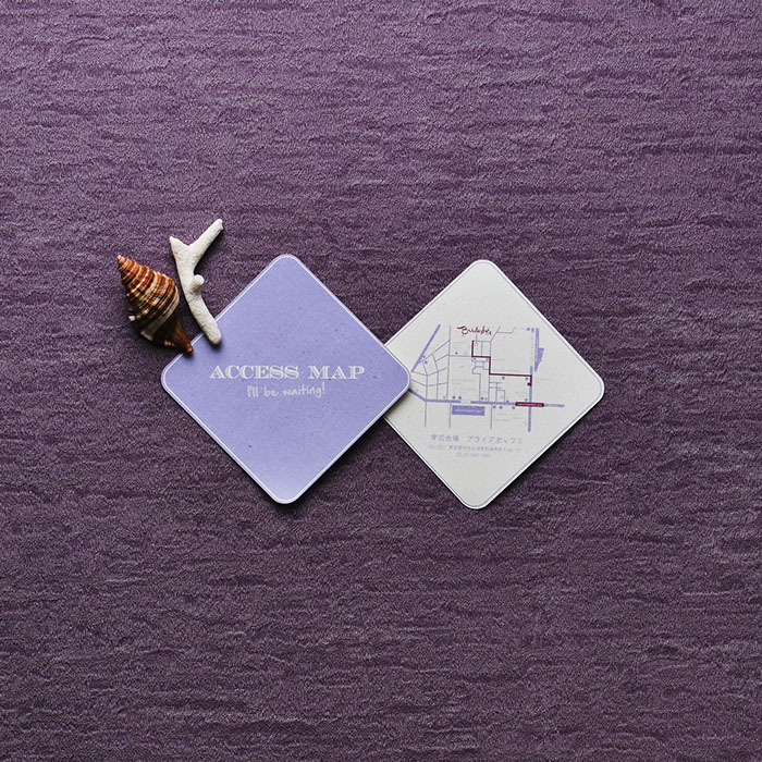 地図や席次表は、エレガントな中に優しさのあるフラッグをイメージしたデザインにしました。