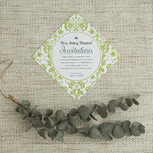 ワンポイントは招待状の使い方です。ダイヤモンド形にレイアウトしたカードは、裏面にマップをのせました。比較的大型なカードなので、式場からの送付物と封筒内で混在してもしっかりと存在感があります。