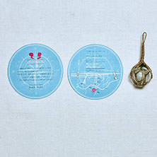 マップは会場へのコンパス。丸くカットしたアイテムは、挙式会場周りで広げていてもおしゃれになるようにいたしました。必要とされていた挙式当日のアイテムのみの注文でしたが、サンプルとして他ラインアップも制作させていただきました。