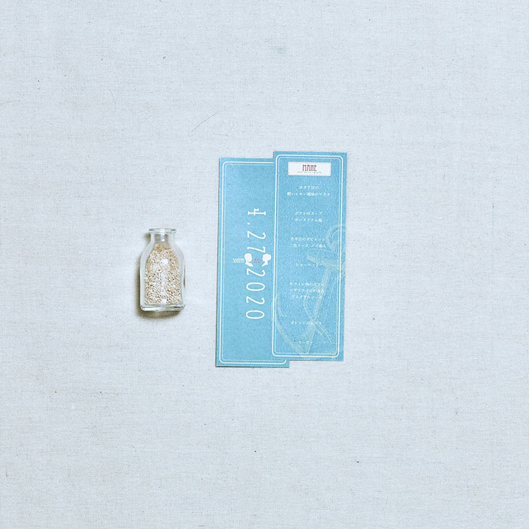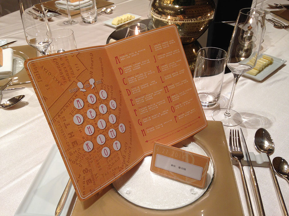 このデザインで表記される新郎新婦のご芳名は、サンプル掲載表記を同意していただいたおふたりのご好意により、実際に制作されたそのままのデザインで掲載させていただいております。(一部変更あり)