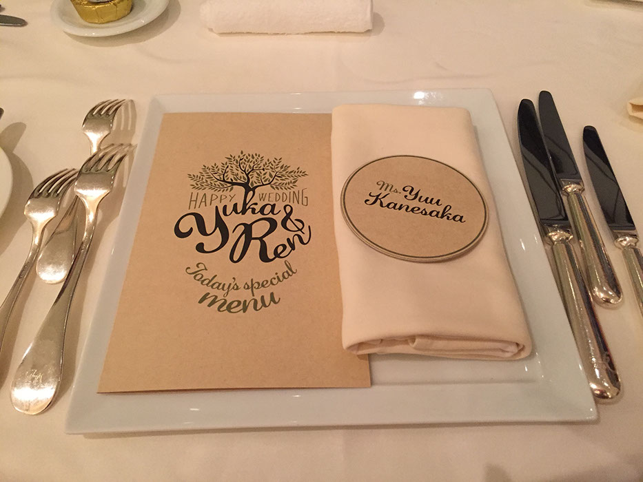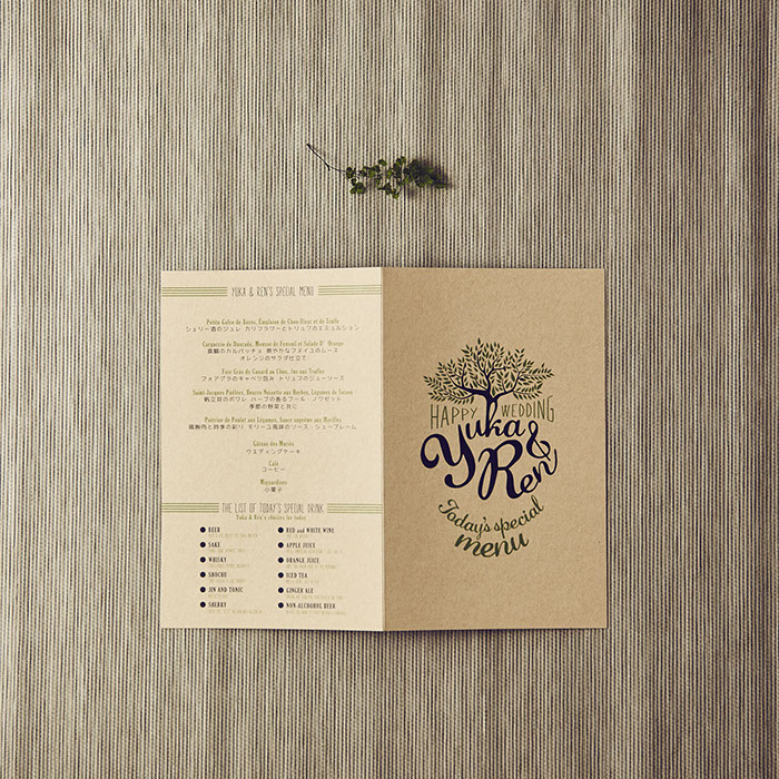 このデザインで表記される新郎新婦のご芳名は、サンプル掲載表記を同意していただいたおふたりのご好意により、実際に制作されたそのままのデザインで掲載させていただいております。(一部変更あり)