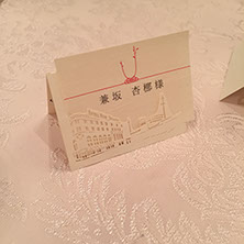 このデザインで表記される新郎新婦のご芳名は、サンプル掲載表記を同意していただいたおふたりのご好意により、実際に制作されたそのままのデザインで掲載させていただいております。(一部変更あり)