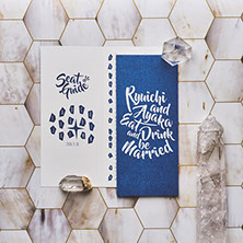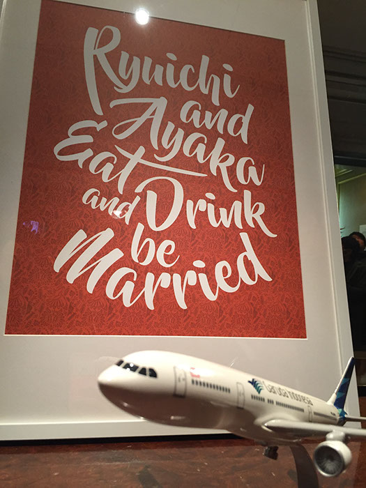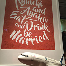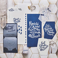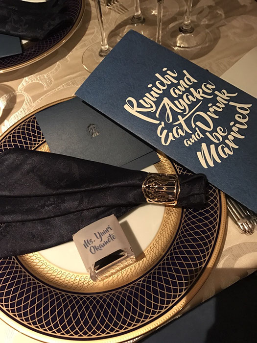 このデザインで表記される新郎新婦のご芳名は、サンプル掲載表記を同意していただいたおふたりのご好意により、実際に制作されたそのままのデザインで掲載させていただいております。(一部変更あり)