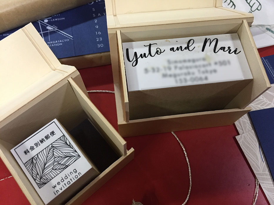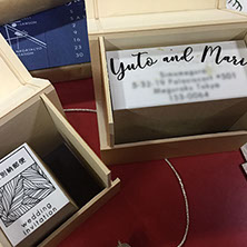 招待状は日時とマップが描かれた帯で留められ、そこからひょっこりと顔を出すタッセルが、なんとも可愛らしいBRIDESBOXになりました。