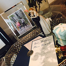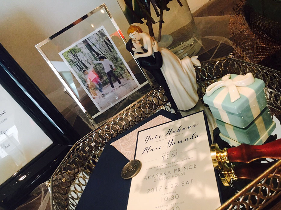 このデザインで表記される新郎新婦のご芳名は、サンプル掲載表記を同意していただいたおふたりのご好意により、実際に制作されたそのままのデザインで掲載させていただいております。(一部変更あり)