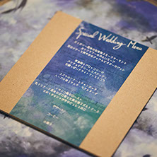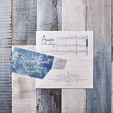 このデザインで表記される新郎新婦のご芳名は、サンプル掲載表記を同意していただいたおふたりのご好意により、実際に制作されたそのままのデザインで掲載させていただいております。(一部変更あり)