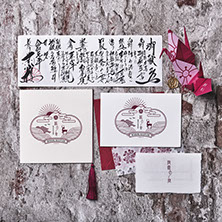 こちらのデザインは、日本伝統の結婚式を大正モダンにイメージしたデザインです。フルセット、または各アイテム1式より注文も可能です。下ボタンよりこちらのデザインを注文、もしくはお電話やメールにてご相談もお気軽にお申し付けください。